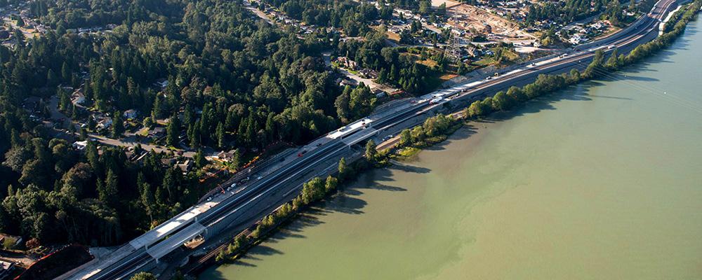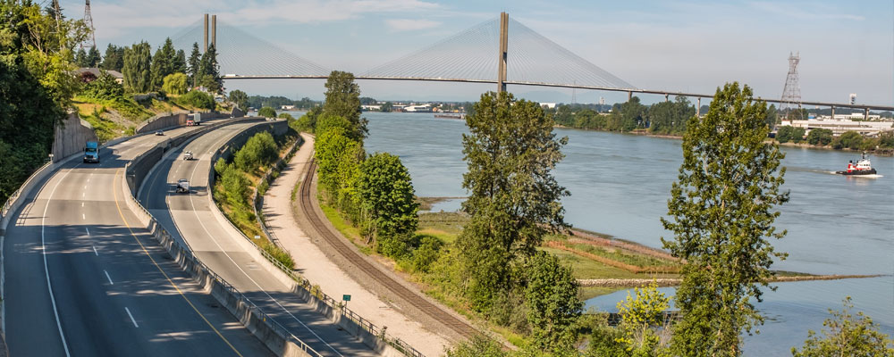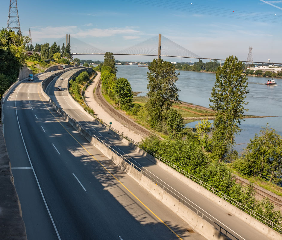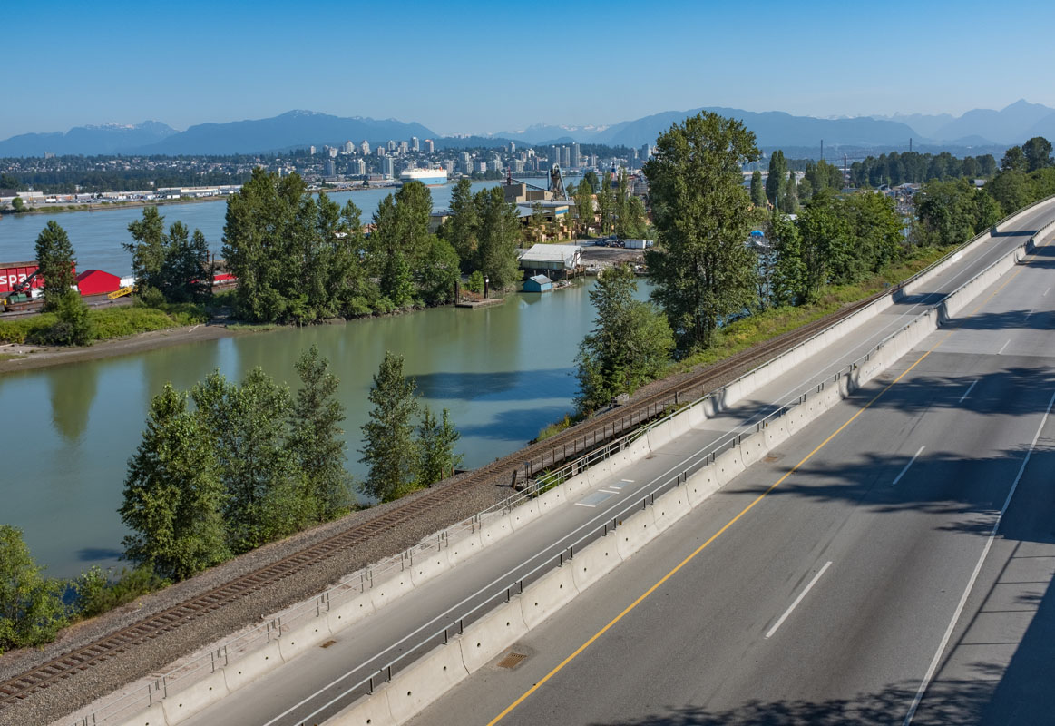 Approximately 40 km long, South Fraser Perimeter Road (SFPR) is a new four-lane expressway along the south side of the Fraser River.
