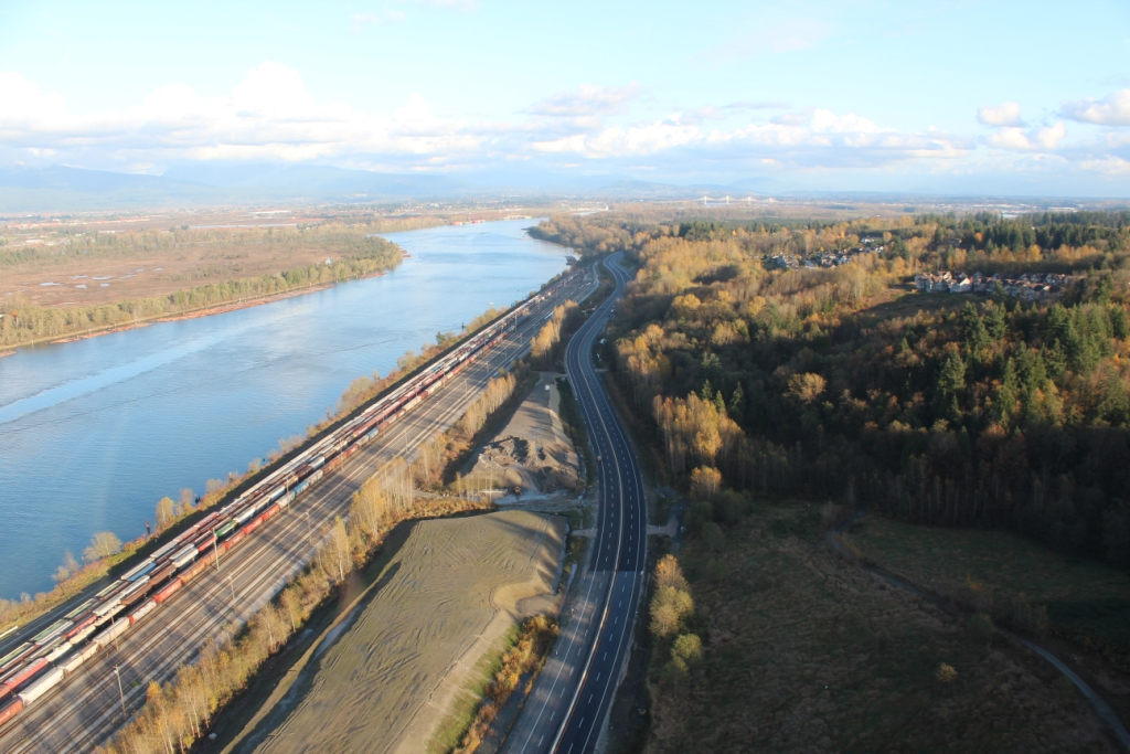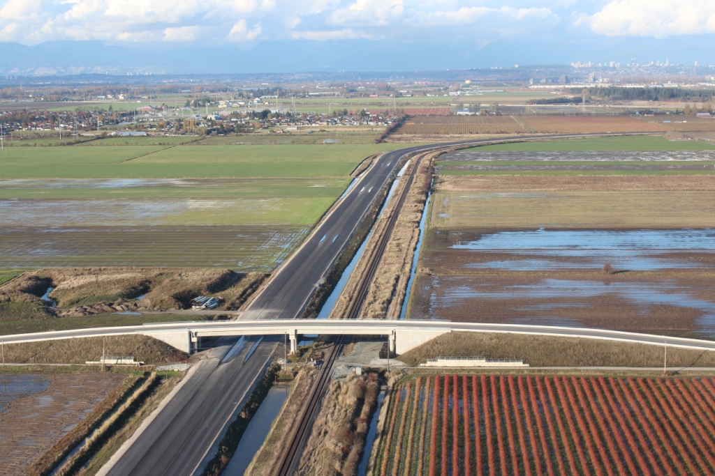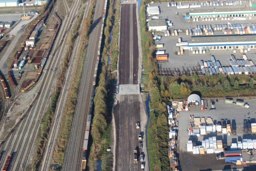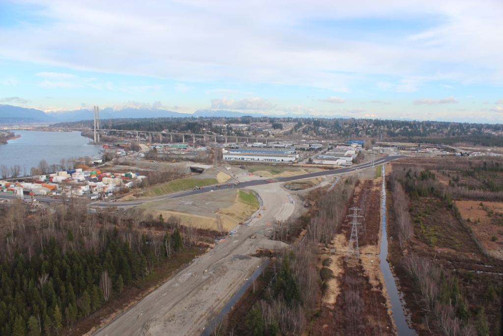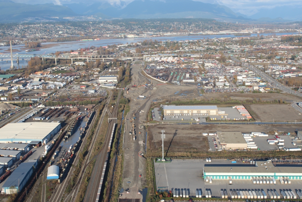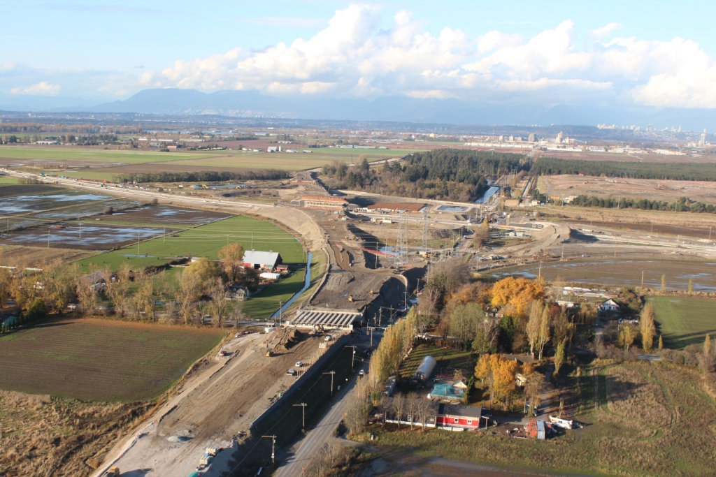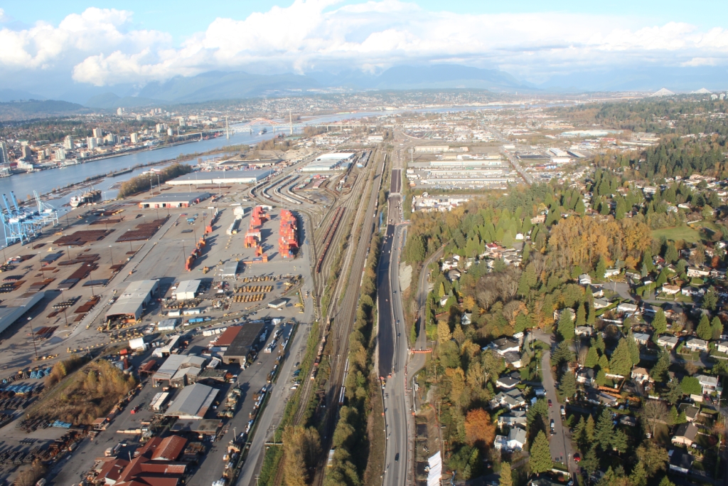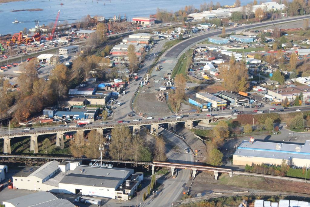 SFPR will pass under the Southern Railway line and Pattullo Bridge_112A Avenue pedestrian overpass behind