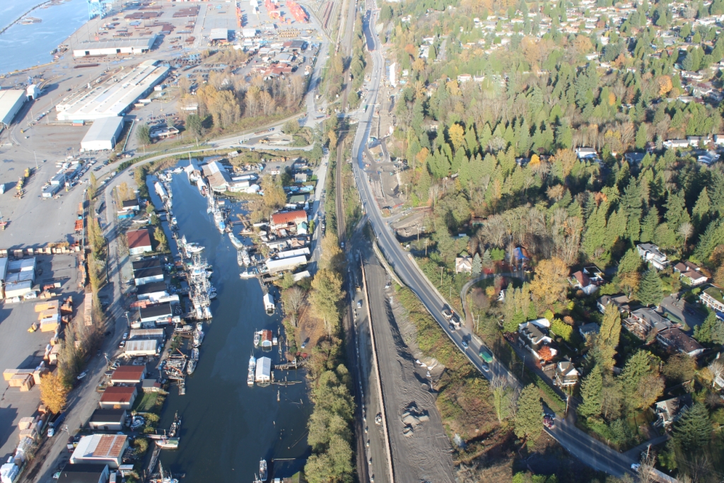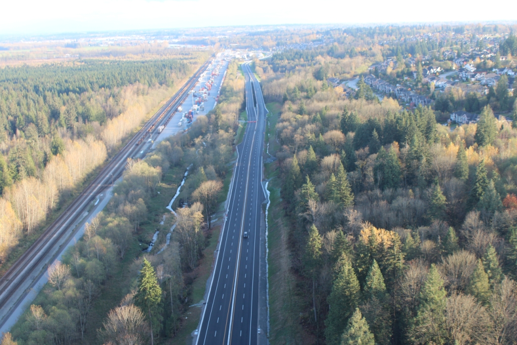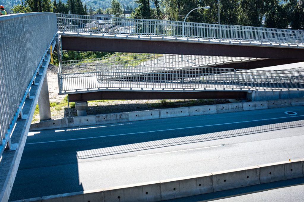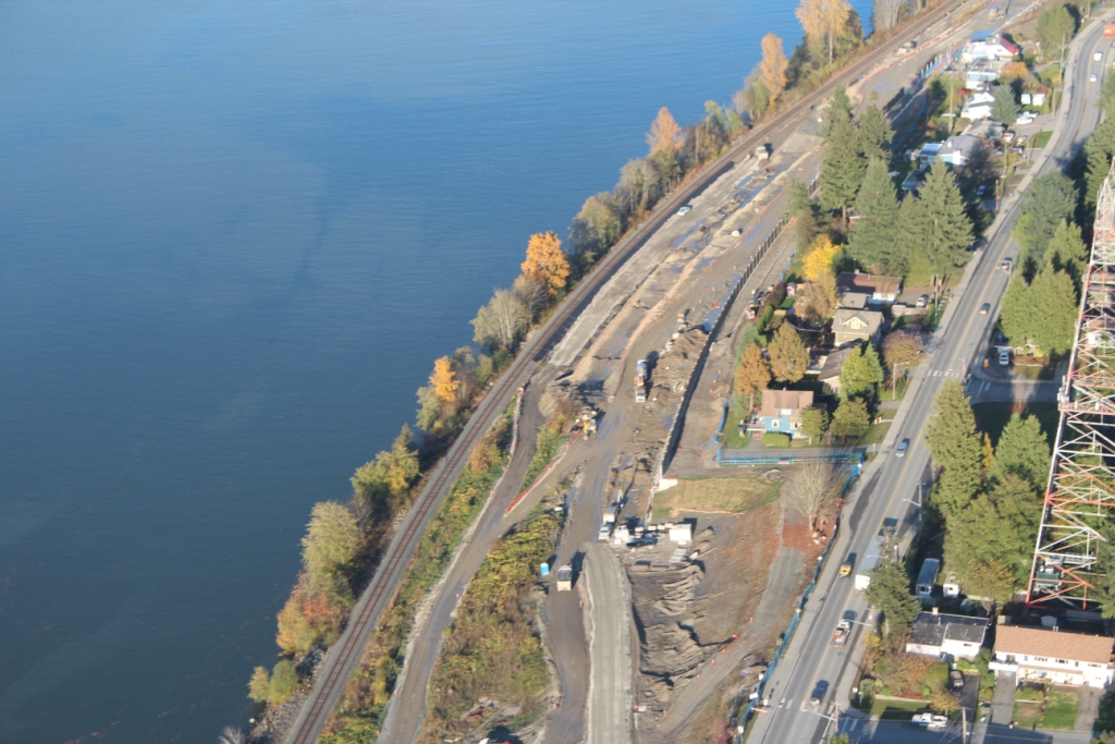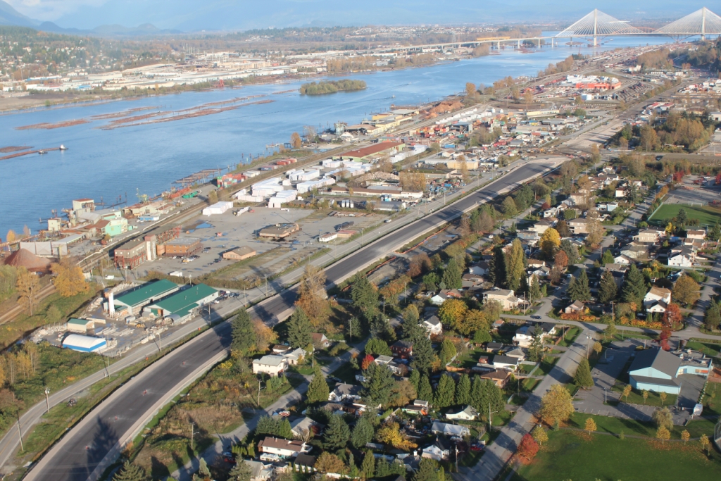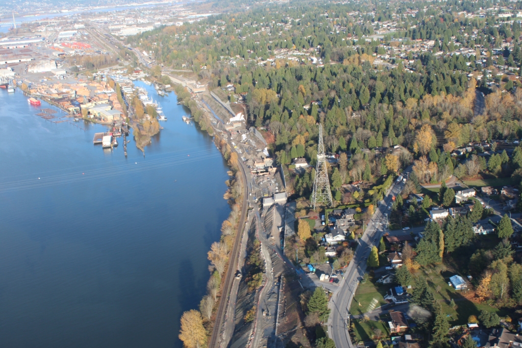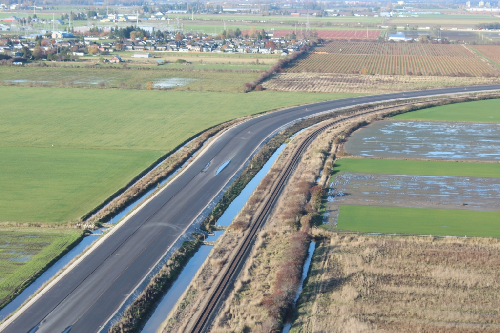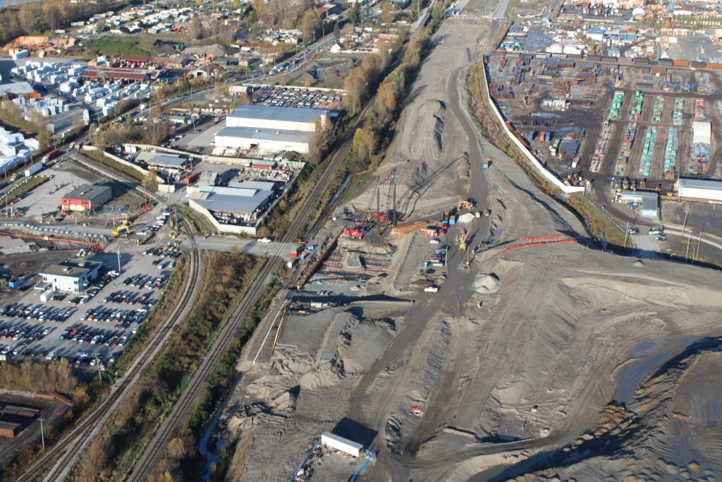 SFPR will pass under the Southern Railway line and Pattullo Bridge_112A Avenue pedestrian overpass behind